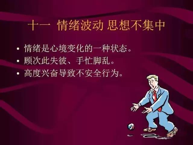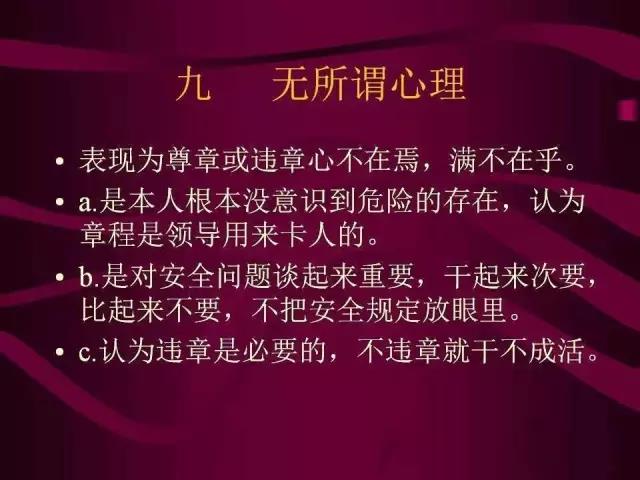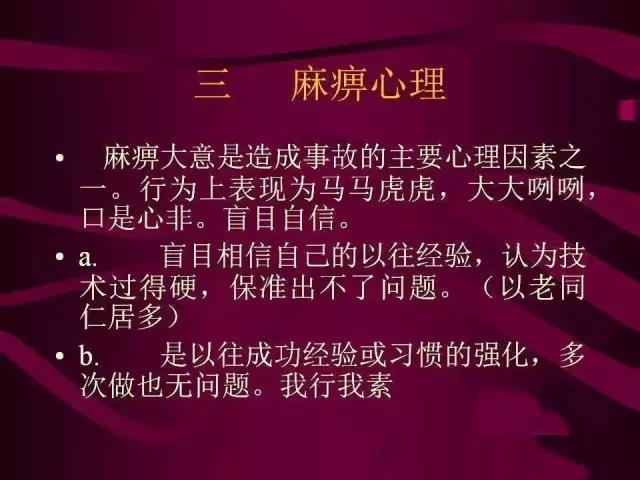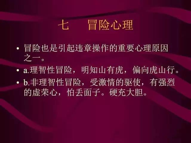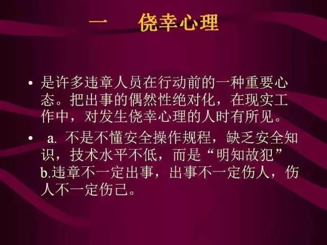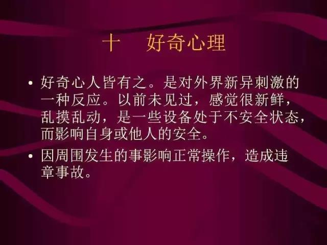 人是生產(chǎn)力中最活躍的因素,在導(dǎo)致事故發(fā)生的種種原因中,人的不安全因素是一種很重要的原因。要想搞好安全生產(chǎn),防止事故發(fā)生,必須及時矯正各種影響安全的不良心理和糾正各種違章行為。這就要求我們研究并運用安全心理學(xué),探索人的安全心理,從而減少人的不安全因素。