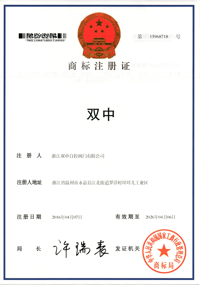 產(chǎn)品中心 企業(yè)榮譽(yù)>> 商標(biāo)注冊(cè)證(雙中) 返回首頁